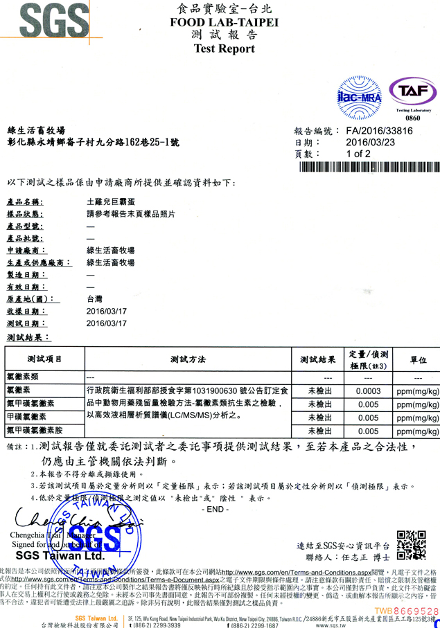 土雞兒巨霸蛋2016/03/23的檢驗報告
