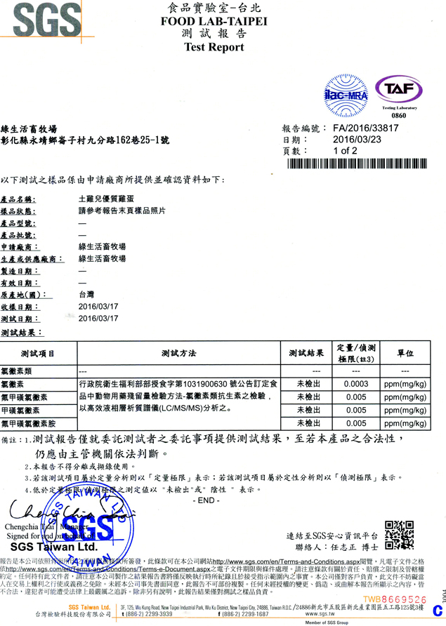 土雞兒優質雞蛋2016/03/23的檢驗報告