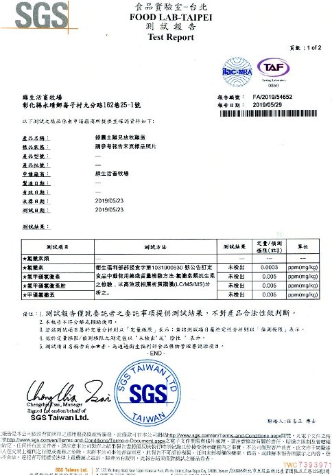 綠農土雞兒雞蛋2019/05/29的檢驗報告